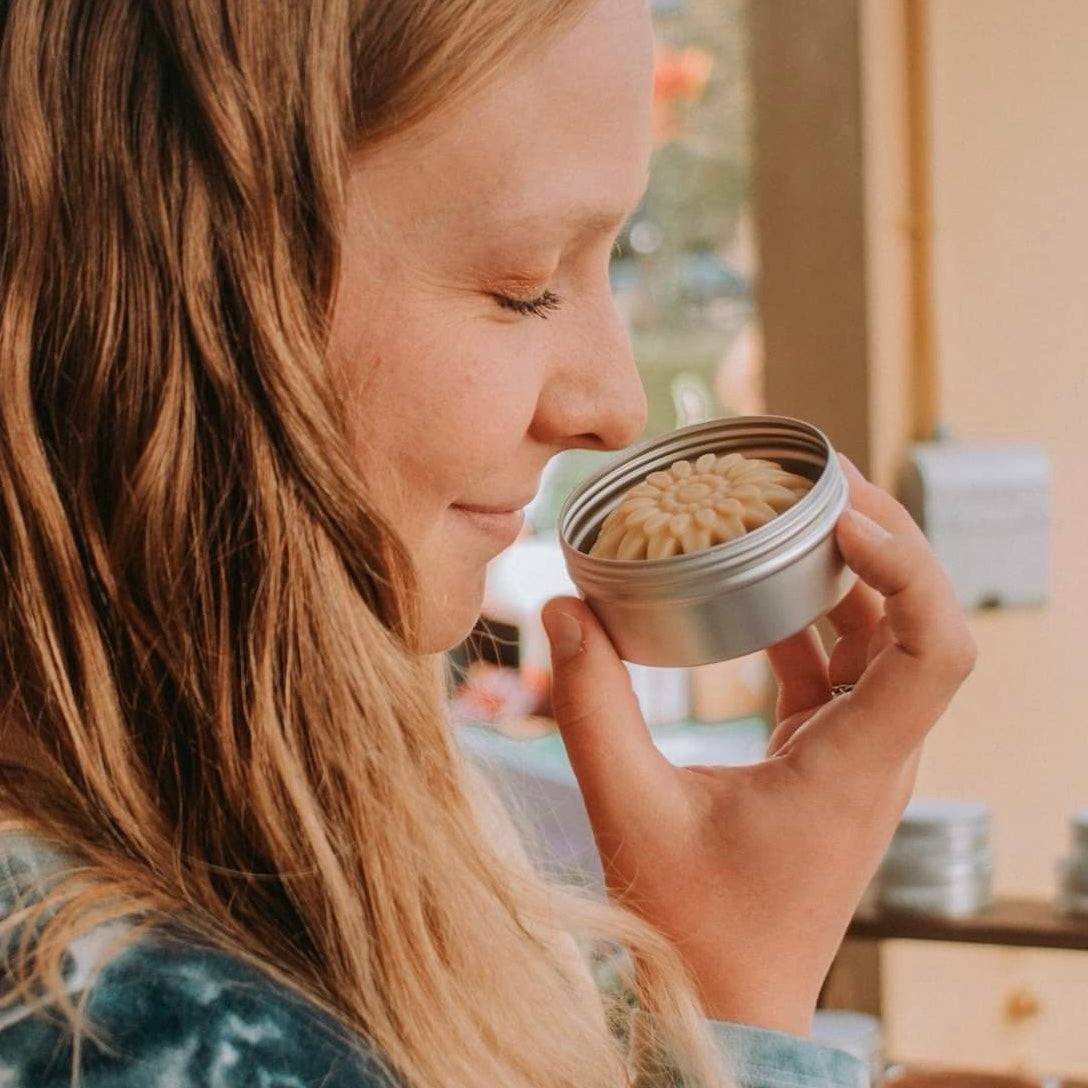 - Unscented/essential oil free! However, Tamanu oil gives this lotion bar a deep nutty smell, comparable to butter pecan!